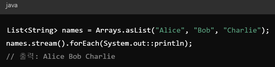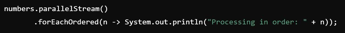 - 순서가 보장되지 않아서 순서필요하면 forEachOrdered()사용해야함