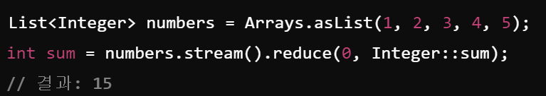 - 스트림의 요소들을 하나의 값으로 축약하는 최종연산