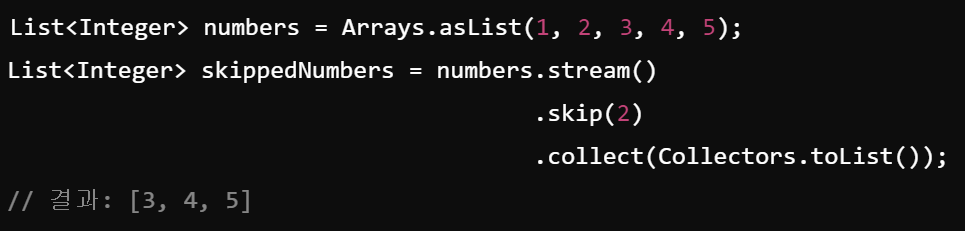 - 처음 n개의 요소를 건너뛰는 중간 연산