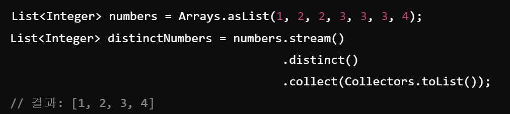 - 중복 요소 제거하는 중간 연산